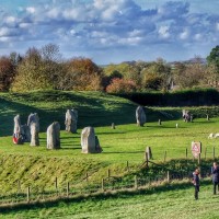 1130 We depart to make the short journey to Avebury. Like Stonehenge, Avebury is a World Heritage Site. It is a complex of monuments that include the West Kennet Long Barrow, a 6000-year-old tomb that we can enter, Silbury Hill, Europe's largest man-made prehistoric hill, and, of course, the stone circle itself. Unlike at Stonehenge, there are no limits to touching the stones at Avebury, walking among them and also around the enormous earth bank that envelops the circle.